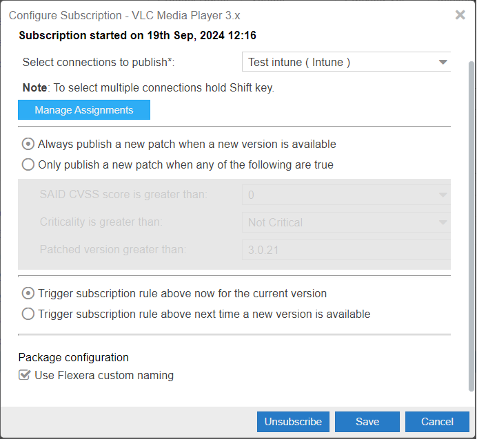 If the package is already subscribed as explained in Subscribe to Patch, you can right click and select Edit Subscription to edit the configured preferences.