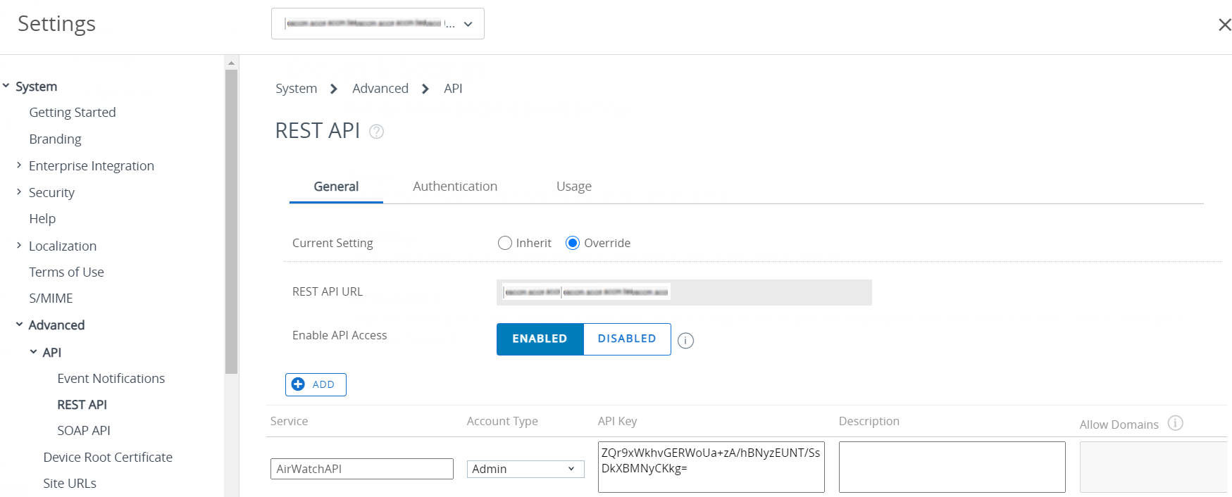 - On the Group & Settings > All Settings > Systems > Advanced > API > REST API .
